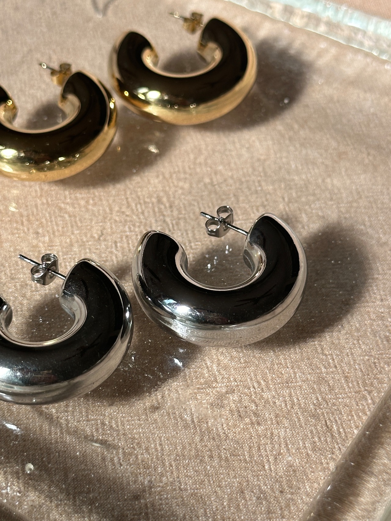 筒状の厚みとボリュームがあるフープピアス。